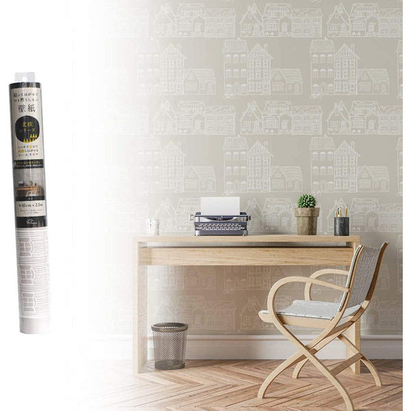 菊池襖紙工場 貼ってはがせてのり残りしない壁紙 家並み 45cm×2.5m巻き JK4556-12 1梱包(12本入)(直送品)