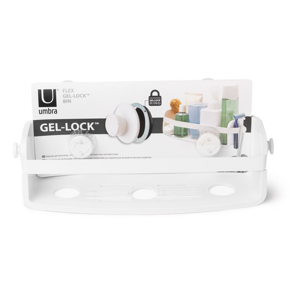 Umbra Studioデザイン。強力ジェルロックで吸盤をしっかり固定するジェルロックシリーズ。ボトルや洗面小物をスマートに収納できる収納アイテム。耐荷重:約4kg。