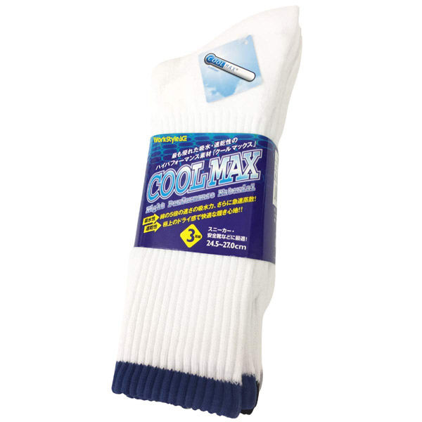 小野商事 クールマックス ソックス 白 先丸 3足 AG268W 1セット(5組)