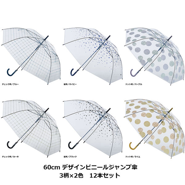 共栄工業 POE デザインビニールジャンプ傘 60cm チェック&星&ドット柄 12本アソートセット 40116-S 1箱(直送品)