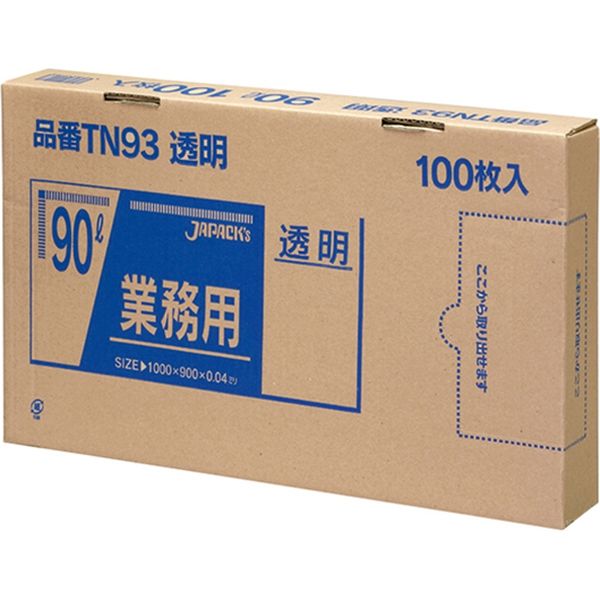 ジャパックス 業務用ポリ袋 90L100枚BOX 透明 厚み0.04mm TN93 1箱(100枚入)