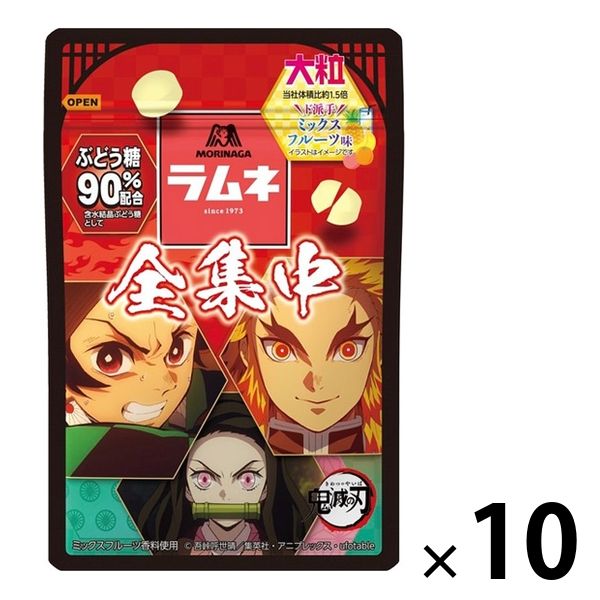| 商品の特徴 | 鬼滅の刃作中「全集中」から繰り出す必殺技のように、気持ちを切り替えたい時やもうひと頑張りしたい時など、考える人を応援するぶどう糖90%のラムネ。シュワっとした食感とマッチした甘く爽やかなミックスフルーツ味がド派手に楽しめる品質。パッケージは主要キャラクターと柱を組み合わせた全6種類。 | ||