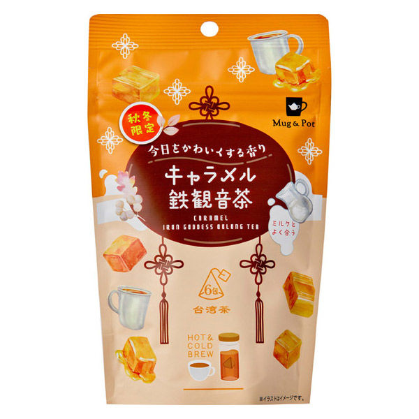 | 商品の特徴 | 深い焙煎香が特徴の台湾産鉄観音茶に、濃厚な甘さのキャラメルフレーバーを合わせました。ストレートでもミルクティーでも美味しくお召し上がりいただけます。お好みでお砂糖を加えて、甘さを調節しながらお楽しみください。ティーバッグ、限定、お茶、烏龍茶、ウーロン茶、ホット、あったかい、温まる、プレゼント、ギフト、おいしい | ||