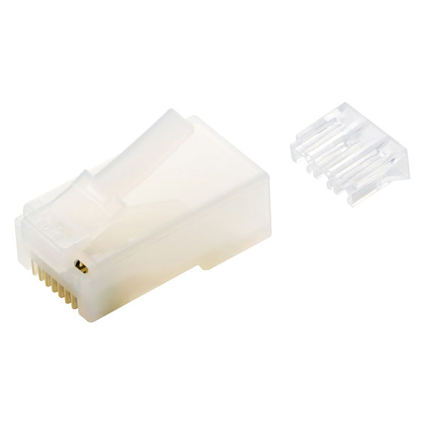 Cat6用のRJ45コネクター10個入りです。単線・ヨリ線の両方に対応しているので、手持ちの材料を有効活用して必要な長さのケーブルを自作する際に活躍します。