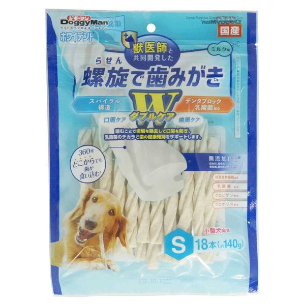 ドギーマンホワイデント 螺旋で歯みがき Wケア S 18本(約140g) 4976555825244 1個(18本)入(直送品)