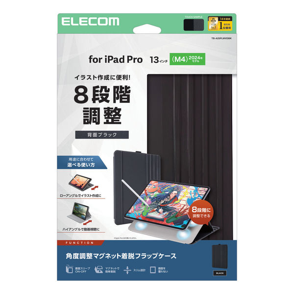 iPad Pro ケース 13インチ (M4) 8段階角度調節 ブラック TB-A25PLWVDBK エレコム 1個(直送品)