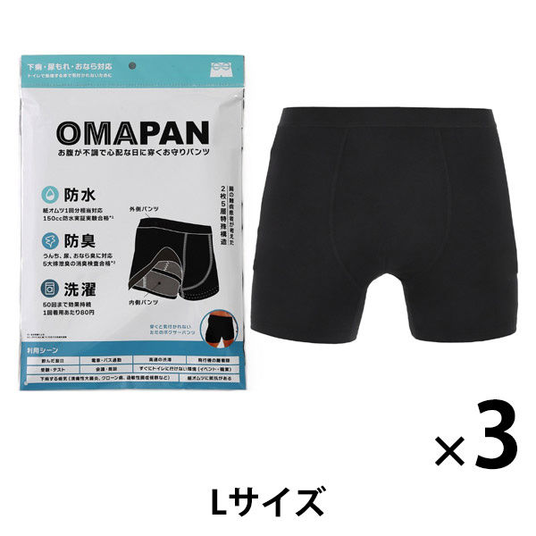 お守りパンツ OMAPAN Lサイズ 1セット(3枚) 防水 防臭 洗濯可 ディヴォートソリューション 軽失禁 尿もれ ショーツ