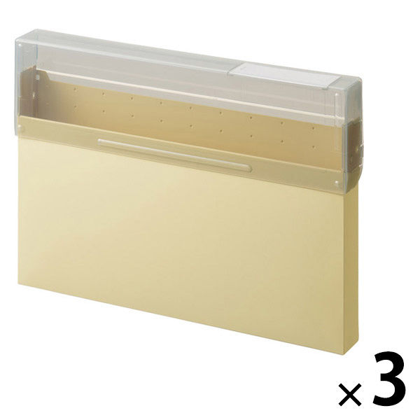 | 商品の特徴 | A4クリヤーホルダーが入るサイズ設計のケースファイルです。フタが大きく開いて、スムーズに書類の出し入れができます。本体色に馴染む透明グレーのフタには見出しが付いており、分類がしやすいです。 | ||