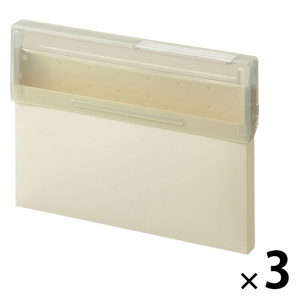 | 商品の特徴 | A5クリヤーホルダーが入るサイズ設計のケースファイルです。ポストカードやステッカーなど細々したものの収納にも最適です。フタが大きく開いて、スムーズに書類の出し入れができます。本体色に馴染む透明グレーのフタには見出しが付いており、分類がしやすいです。 | ||