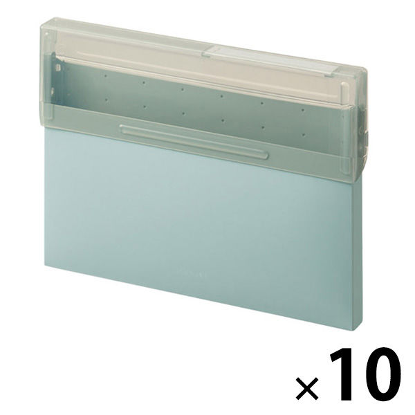 | 商品の特徴 | A5クリヤーホルダーが入るサイズ設計のケースファイルです。ポストカードやステッカーなど細々したものの収納にも最適です。フタが大きく開いて、スムーズに書類の出し入れができます。本体色に馴染む透明グレーのフタには見出しが付いており、分類がしやすいです。 | ||