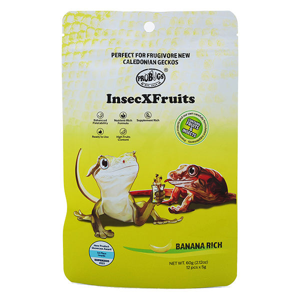 | 商品の特徴 | バナナと生の昆虫を混合したペースト状飼料。少量の小分けスティックでクレスの日替わりおやつに! | ||