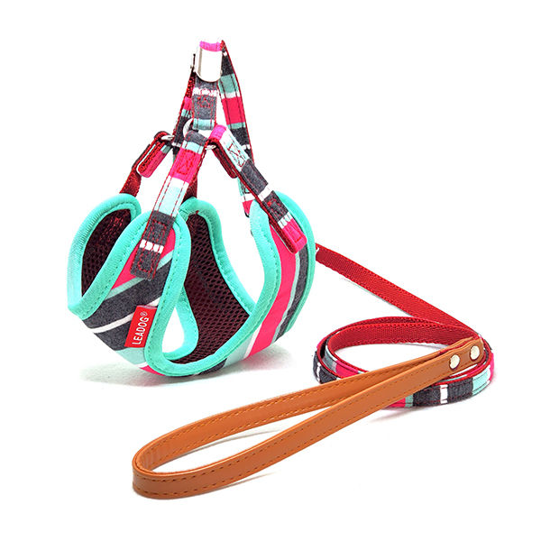 わんちゃん猫ちゃんとの生活が、もっとに楽しくなる様に、思いを込めたアイテムです。お洒落でかわいい、装着が簡単な、ボーダー柄のわんちゃん用、ソフトハーネス付きリードです。