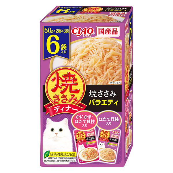 | 商品の特徴 | 多頭飼いの家庭でも安心のファミリーパック。焼ささみディナーの人気フレーバーを組み合わせたバラエティパック。猫ちゃんの気分に合わせて2種類の味が楽しめます。(子猫用は1種類のみ)国産品。 | ||