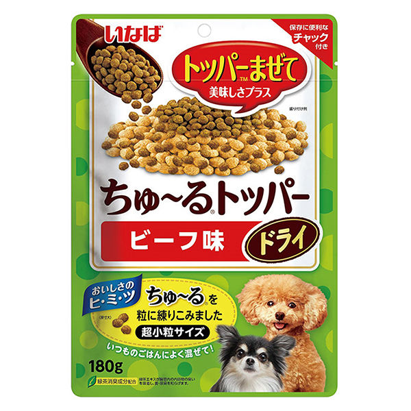 | 商品の特徴 | 粒にちゅ~るを練りこんだドライタイプのおやつ。いつものごはんに混ぜていただくことで美味しさをプラス。ドライフードに混ざりやすい超小粒サイズです。わんちゃんの好きなフレーバーで粒をコーティングしました。保存に便利なチャック付き。 | ||