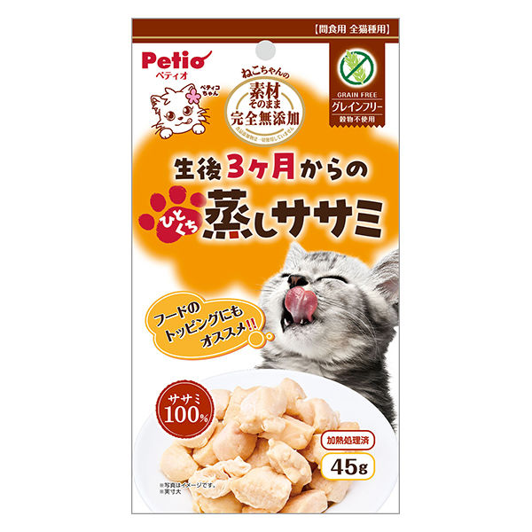 ペティオ 素材そのまま ねこちゃんの完全無添加 生後3ヶ月からのひとくち蒸しササミ 45g 4903588144059 1個(45g)入(直送品)