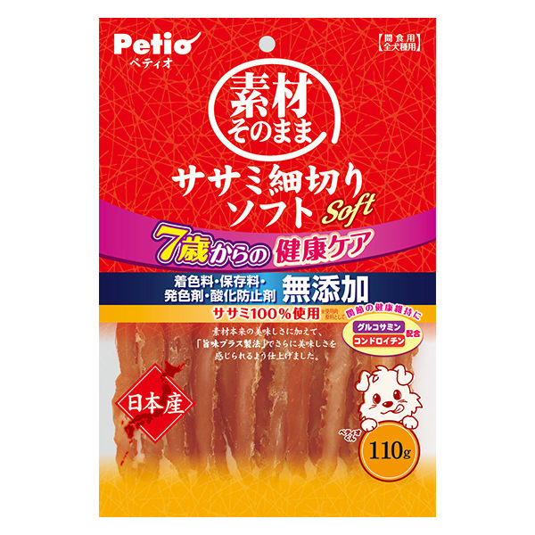 | 商品の特徴 | シニア犬にも食べやすいやわらか食感のササミ細切り!グルコサミン・コンドロイチン配合で美味しく健康ケア! | ||
