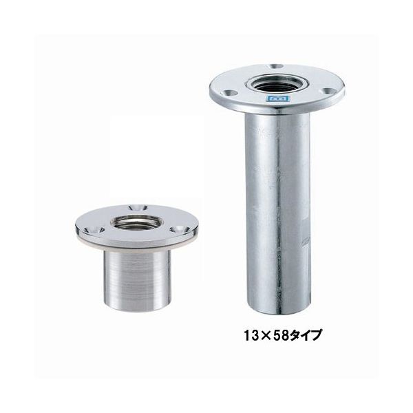 | 商品の特徴 | ●給水、給湯用のユニット用ツギタシ(内ねじ)です。●厚い壁面、床面を貫通する時は、100L、150Lがございますねじ込みには専用工具M136Lをご使用ください。●《ご注意》●取付後は漏水がないか確認をしてください。●材質:13×50×34/黄銅製クロームメッキ13×58×100、150本体/青銅製クロームメッキ、フランジ/黄銅製クロームメッキその他/青銅製クロームメッキ | ||