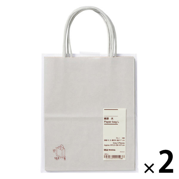 無印良品 紙袋 大 グレー 3枚 約幅13.5×奥行8×高さ17 cm 1セット(1個(3枚入)×2) 良品計画