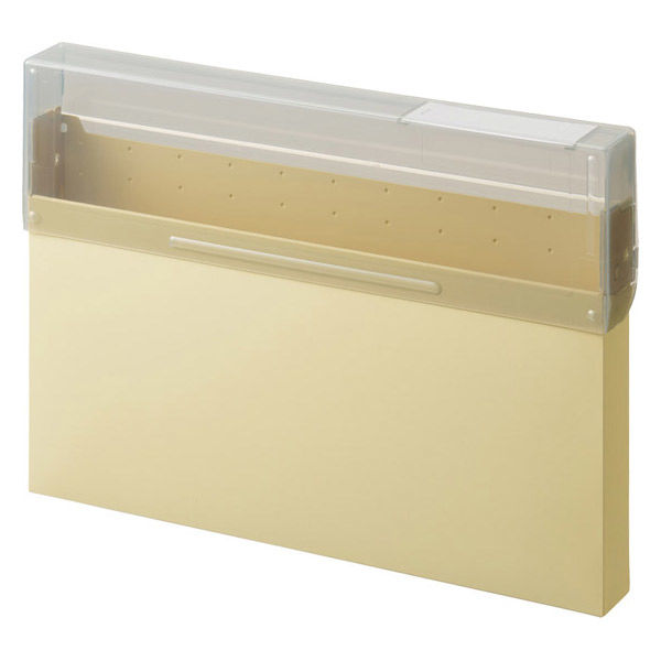 | 商品の特徴 | A4クリヤーホルダーが入るサイズ設計のケースファイルです。フタが大きく開いて、スムーズに書類の出し入れができます。本体色に馴染む透明グレーのフタには見出しが付いており、分類がしやすいです。 | ||