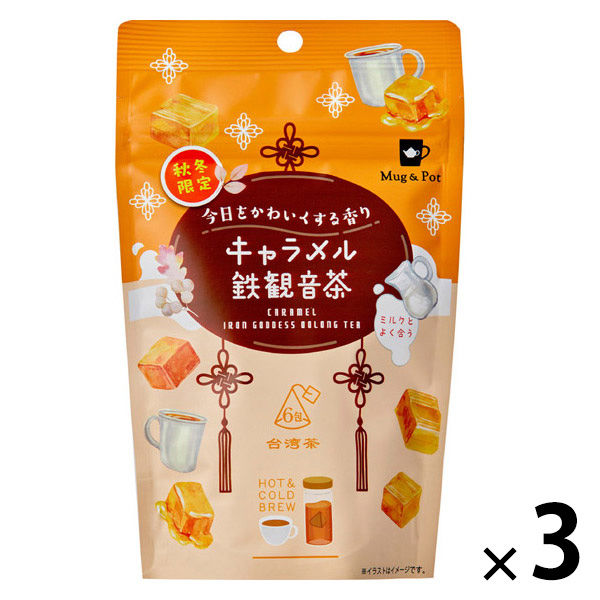 | 商品の特徴 | 深い焙煎香が特徴の台湾産鉄観音茶に、濃厚な甘さのキャラメルフレーバーを合わせました。ストレートでもミルクティーでも美味しくお召し上がりいただけます。お好みでお砂糖を加えて、甘さを調節しながらお楽しみください。ティーバッグ、限定、お茶、烏龍茶、ウーロン茶、ホット、あったかい、温まる、プレゼント、ギフト、おいしい | ||