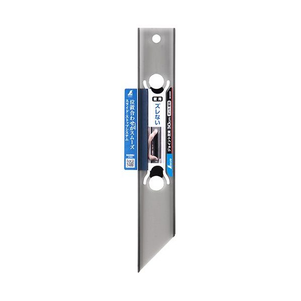 | 商品の特徴 | ●壁紙を貼る際に、下地処理でできた段差や隙間を平らにします。●ヘラを使って、段差や隙間にパテまたは補修材を塗布し、その上から定規を押し当てることで、平らにすることができます。●軽くて丈夫なポリカーボネート樹脂製です。●カッター面に刃が食い込まないよう、ガイド面はステン鋼を貼り付けています。●スライド・ストップシステムを採用。通常はスベリ止が浮いているため、スムーズにスライドできます。穴のヘリを押さえると、スベリ止部分がクロスに密着し、ガッチリ固定できます。 | ||