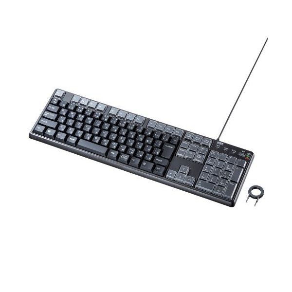 - ●セット内容:●セット内容:製品本体、キートップ引き抜き工具、取扱説明書●接続方式:有線●テンキー:あり●スリムタイプ:標準●キーボードサイズ:スタンダート●角度調節:あり●サイズ:W443×D134×H33.6mm●重量:約870g●対応機種:Windows搭載(DOS/V)パソコン●対応OS:Windows11・10●スタンダードな108キーボードに割付機能を搭載したプログラマブルキーボードです。●専用ソフトで文字列やショートカット機能を割り当てることができます。●F1~F12部分やテンキー部分など合わせて43個のキーを自分好みにカスタマイズできます。●割り当てをしていない標準モードと、2種類の割り当てモードをボタン一つで切り替えできます。●よく使うメールアドレスや単語(英語のみ)を割り当てて、入力時間の短縮が可能です。●割り当てた機能はボード本体のメモリーに記憶されているので、一度設定すればドライバの入っていないパソコンでも同じ機能が使えます。●キートップのカバーが外れるので、割り当てた文字の用紙やシールなどを貼ることができます。※シール・用紙は同梱していません。●しっかりした深めのメンブレンキー方式です。●≪割り当てに関する注意≫●※割り当てた機能はアプリケーションや機器により正常に動作しない場合があります。●※ひらがな・カタカナや漢字は割り当てできません。