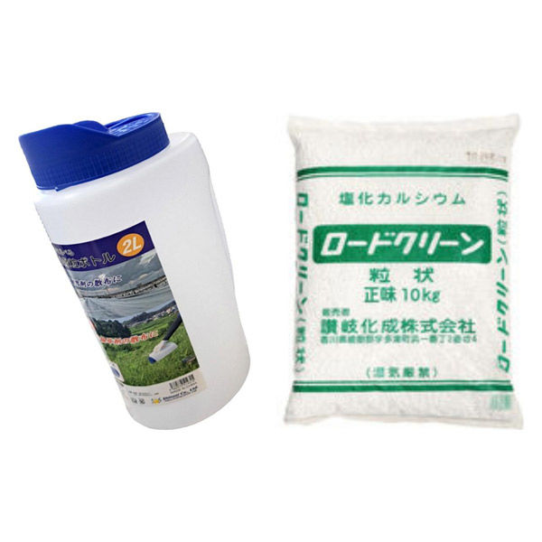 | 商品の特徴 | 屋外の通路や駐車スペースの凍結対策に向けたセットです。半透明の2Lボトルは中身が見えやすく、量を把握しながら散布できます。口径は大・中・小から選べ、3mm前後の粒をそのまま均一に広げやすい形です。塩化カルシウムを主成分とする融雪剤は、厚さ2cm程度の新しい雪なら1平方mあたり約50~80gで扱えます。玄関まわりや店舗前の通路など、作業量が限られている場所でも手早くまけるので、凍結による転倒や車の滑りが起きやすい時期に使いやすい組み合わせのセットです。 | ||