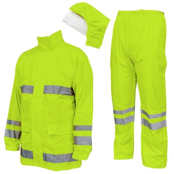 ●高輝度反射素材と鮮やかなハイビズカラーで夜の視認性を向上したレインスーツです