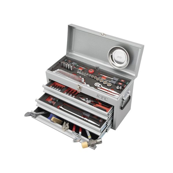 KTC 80点組 9.5SQ 自動車・二輪整備用 スタンダードセット ツールチェスト シルバー 【2025年SKセール】 SK38026XS(直送品)