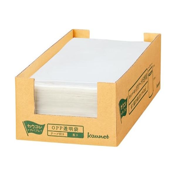 カウネット 取り出しやすい箱入OPP袋 テープ付 長3 1000枚入 42551041 1箱(1000枚) 64-9363-33(直送品)