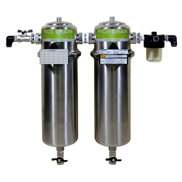| 商品の特徴 | ●フィルター式ドレン処理装置。●処理濃度ヘキサン抽出物質5mg/L以下。●適用コンプレッサ(kW)22以下(目安) | ||