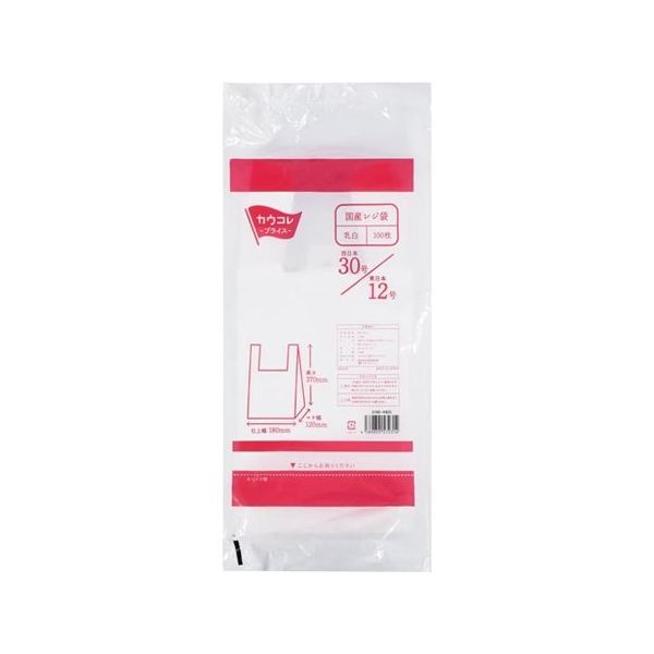 カウネット 国産レジ袋 乳白30号 100枚入 31964425 1冊(100枚) 64-9357-95(直送品)