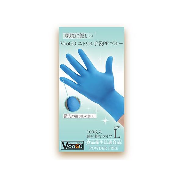 アズワン VooGOニトリル手袋 PF ブルー L 100枚×30箱 65-0314-02 1ケース(3000枚)(直送品)