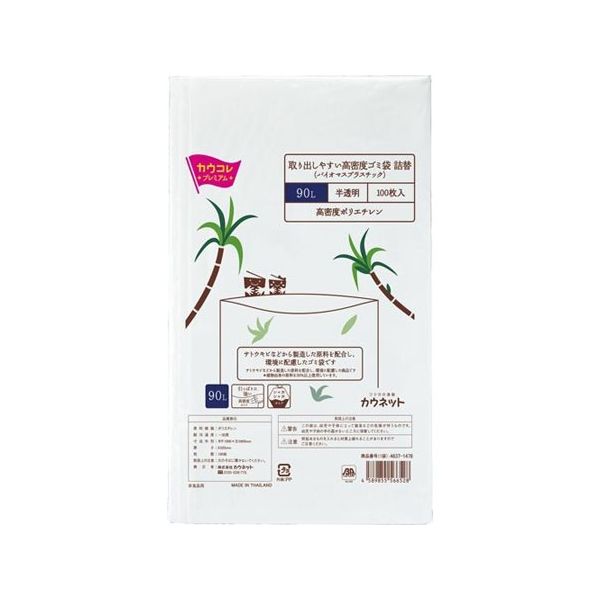 | 商品の特徴 | ●取り出しやすい高密度ゴミ袋(バイオマスプラスチック)の詰替え用です。●袋のままでも使えます。●サトウキビの搾りカスから製造した植物由来原料を使用した環境配慮型商品です。 | ||