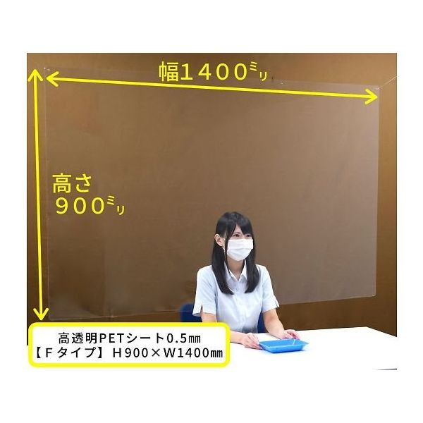 - ●ビニールより透明度が高いPETシートを使用した吊り下げ式パーテーション●ビニールと違いシワにならない、柔らかくて丈夫な厚み0.5mm●従来のアクリル製では不可能だったアルコール除菌もPET製なら可能です●もし火が着いても自ら鎮火する「自己消火性」のPET樹脂●ペットボトルと同じ素材なので廃棄しやすい素材です●【Fタイプ】●サイズ:高さ900×横幅1400、シート厚み0.5(mm)●重量:約800g●上部に取付け用穴4箇所あり●付属品:吊りフック4個、釣り糸10m●材質:透明PET樹脂(日本製)●納品時、透明PETシート両面には傷防止フィルムが貼られています●寸法公差:±1mm●※付属のフックを使用する場合は天井にフックを刺す穴をあける必要があります。脆い材質の天井には不向きです。●設置時のフック取り付け、釣り糸のカットなどはお客様にお任せとなります。●衝撃には強い素材ですが、擦り傷や凹み傷は残りますので、お手入れの際は柔らかな布で優しく拭き取り掃除をしてください。