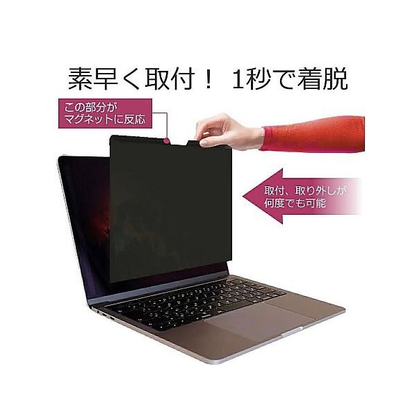 - ●視野角を制限し、正面以外からの画面閲覧を効果的に防止します。●オフィスやテレワーク、公共施設などでのプライバシー保護に適しています。●反射防止加工により、蛍光灯や太陽光など周囲の光の映り込みを軽減します。●長時間のパソコン作業でも画面が見やすく、目の疲れを抑えます。●表面はハードコート加工(キズ防止)済みで、液晶画面を傷や汚れからしっかり保護します。●高透過率で正面からの表示は鮮明。文字や画像がくっきりと確認できます。●干渉縞によるモアレを抑える構造で、違和感のない視認性を実現しました。●付属のシールを四隅に貼って画面に取り付けるだけで簡単に装着可能です。●マウンティングタブを使用することで、スライド着脱が可能です。●ご購入前の注意点●▲本製品は液晶画面の表示領域のみをカバーします。フルフラットパネル全面を覆う仕様ではありません。●▲両面テープで取り付け・取り外しを行う場合、画面に傷が付く恐れがありますのでご注意ください。●▲装着時に液晶画面を強く押さえると破損の原因になります。●▲本製品はタッチ操作やペン入力には対応しておりません。●取付方法(2種類)