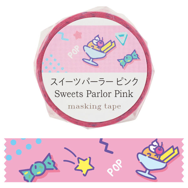 - 昔見たあの色、あの柄、あのワクワク。昭和レトロなポップカラーにときめく、ちょっぴり懐かしくてキュートなマスキングテープです。あなたの好きを詰め込んで、ノスタルジックデコを楽しんで!キャンディやパフェなどのスイーツをデザインした、懐かしさと今っぽさが融合したレトロスイーツ柄のマスキングテープです。かわいいイラストと鮮やかなピンクカラーがアクセントになり、ギフトやノートを彩ります。1.5cm幅×5m巻で、日常使いにちょうどいいサイズ感。手帳やノート、ラッピングなど幅広い用途で楽しめます。毎日のちょっとしたシーンに華やかさを添えてくれるアイテムです。
