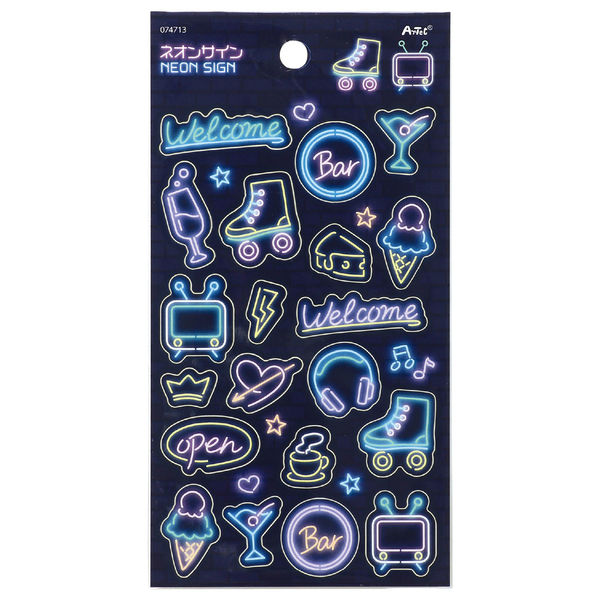 | 商品の特徴 | 80'sムードをまとったポップでレトロなネオンサイン。懐かしいのに今っぽい、貼るだけで気分も上がるシートシールです。ヘッドフォンやローラースケート、カクテルグラスなど80’sモチーフが並ぶユニークなデザインです。1シートでたっぷり20枚入りだから、手帳やギフトデコにも大満足。毎日のちょっとしたシーンにときめきを与えてくれるアイテムです。 | ||