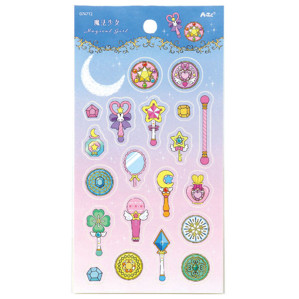 | 商品の特徴 | 魔法少女の世界観をそのまま切り取った、夢いっぱいのシートシールです。きらめくステッキ、秘密のコンパクト。あの日夢見た魔法少女は今も心の中にある。大人になった今こそ楽しめる、少し特別な魔法のシートシールです。1シートでたっぷり20枚入りだから、手帳やギフトデコにも大満足。毎日のちょっとしたシーンにときめきを与えてくれるアイテムです。 | ||