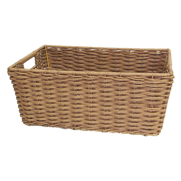 | 商品の特徴 | 天然素材風のフェイク素材を使用したフェイクラタンバスケットです。 ポリエチレン素材の為、サッと水洗いが可能です。 フェイク素材なので、丈夫で壊れにくいです。 水に強いので、水まわりでの使用も可能です。 持ち手穴付きなので、引き出す際や持ち運びに便利です。 | ||