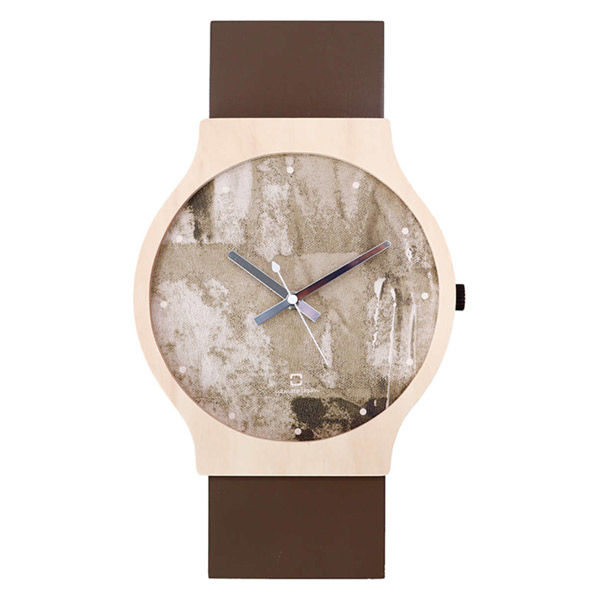 | 商品の特徴 | 腕時計の様なデザインの壁掛け時計です。 数字を施していないデザイン性の高い文字板です。 漆器のトレーや菓子皿などに使われる、布張りの板に抽象的な配色が特徴的です。 木目が美しい木枠の部分は、職人が手仕事で木材を一つ一つ丁寧に曲げています。 しっかりと時を刻むステップ秒針です。 単3形乾電池1本(電池別売り)の使用で動きます。 | ||