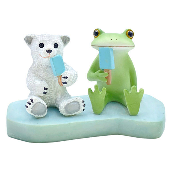 | 商品の特徴 | 手のひらサイズのキュートなカエル、コポーシリーズの「しろくまとアイス」です。 コポタロウの愛くるしい姿や表情が心をほっこりと癒してくれます。 一つ一つ職人さんが心を込めて手作業で作製しています。 お部屋や玄関はもちろん、ワークデスクにもおすすめです。 お気に入りのコポタロウを飾ってお家のインテリアをさらに可愛くしてみませんか。 テーマを決めてシリーズで飾ると、個性豊かな彼らの世界感をよりお楽しみいただけます。 | ||