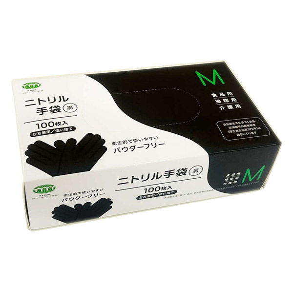 アルフォーインターナショナル 手袋 ニトリル手袋 100枚 S M L ブラック 左右兼用 パウダーフリー 489528 1個(直送品)