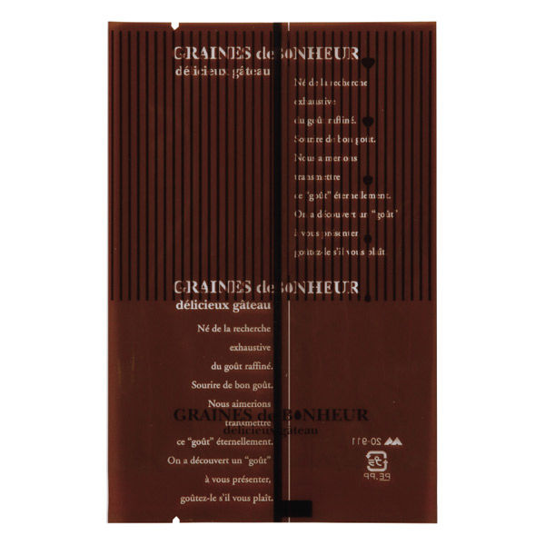 | 商品の特徴 | 表面と裏面の両方にデザインの入った、シンプルな脱酸素剤対応の個包装袋です。 | ||