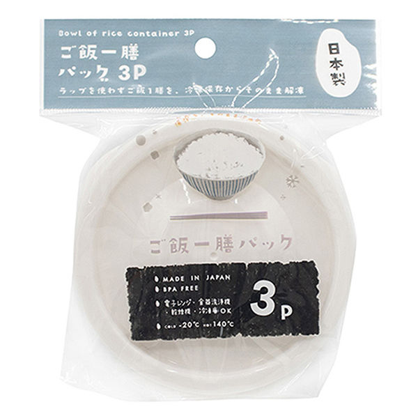 | 商品の特徴 | ご飯一膳を冷凍保存後、そのままレンジで解凍できるごはん保存容器。一膳サイズで食べきりに最適。冷凍保存も可能で、3個セットで便利。 | ||