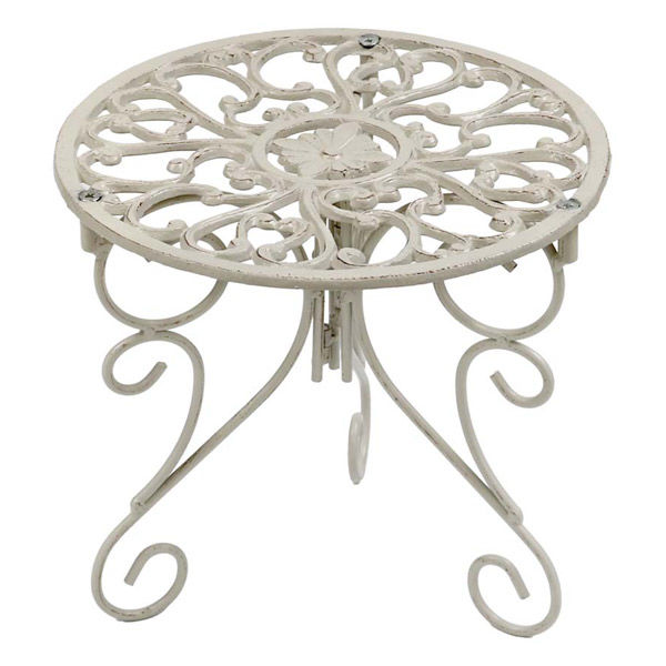 | 商品の特徴 | 「優雅な透かし模様が空間を華やかに。使うほど味わい深い鋳物製スタンド」 繊細な模様が施された天板と、エレガントな曲線を描く脚部が美しい、英国風デザインのプランタースタンドです。置いておくだけでも存在感があり、お気に入りのプランターをさらに引き立てます。 アイアン鋳物ならではのずっしりとした重みで、安定感抜群。ハイとローを並べて置けば、奥行きの感じられるお庭になって素敵ですよ。 | ||