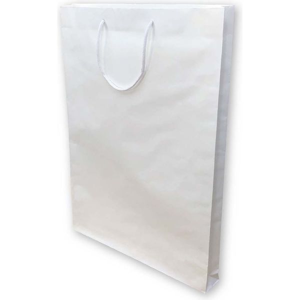 商品の特徴 賞状額縁を入れるための紙袋。額縁の厚みに合わせてマチ幅を狭くしています。A3サイズの額縁1枚がきれいに収まります。使用シーンを選ばない定番の白無地タイプ。本体は晒クラフト紙、持ち手は丸紐を使用、底には補強用の厚紙が入っており、しっかりとした作りで額縁を入れた時の見た目もきれいです。額縁の他にも、大判のパネルや製図板、作品や書類の持ち運び・保管にも便利。【サイズ】A3サイズ(W390×H510×D45mm)【入数】10枚入【カラー】白【材質】晒クラフト紙(120g/平方m)【持ち手】丸紐