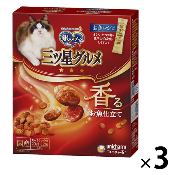 | 商品の特徴 | ・贅沢な素材の旨みたっぷりで、香ばしく焼き上げた三ツ星のおいしさ・カリッと食感の粒が入って、色々な食感が楽しめます。・抜群のおいしさと優れた栄養バランスを実現した全成長段階用総合栄養食・ねこの下部尿路の健康維持に配慮して、マグネシウム量を調整(含有量:0.08%:標準値)・おいしさと豊かな風味を逃さない、食べきり小分けパック20g(標準)×12袋(猫の餌 餌 えさ エサ 猫フード 猫用フード ねこフード) | ||