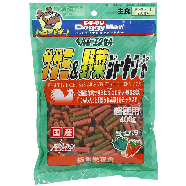 ドギーマン 超徳用 ヘルシージャーキー エクセルササミ&野菜 国産 400g 1袋