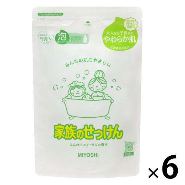 | 商品の特徴 | 家族みんなの素肌にやさしい泡のボディソープ。ふわふわツルツルの泡の感触とふんわりフローラルの香りで家族みんなでお使い頂けます。 1プッシュで3ccの泡がたっぷりと出てくるので、少ないプッシュ回数で洗えるのも特長です。 | ||